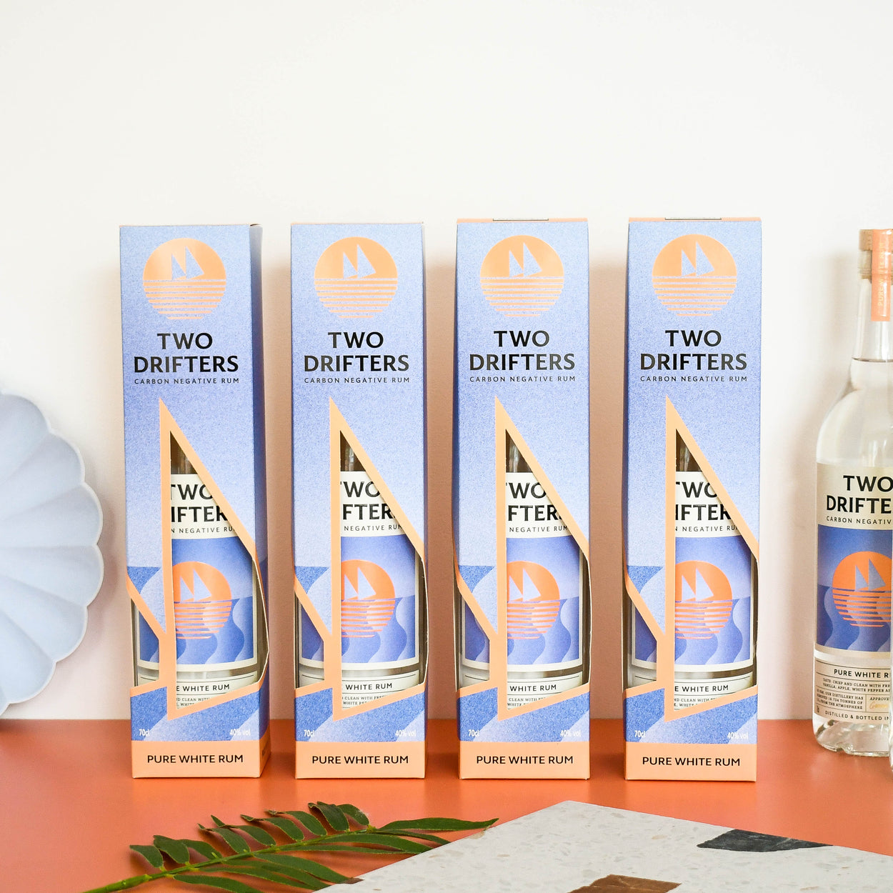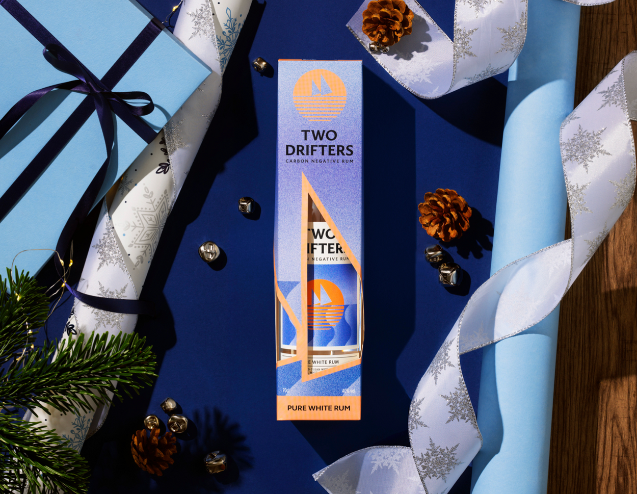 Give the gift of beautiful, delicious, sustainable rum, with this custom gift box. Made from World Land Trust card, this box maintains our carbon negative footprint. Add a gift note in Checkout, and will send your note on a Two Drifters cocktail postcard. Each bottle of Two Drifters Rum removes over 1 kg of CO2 from the atmosphere.